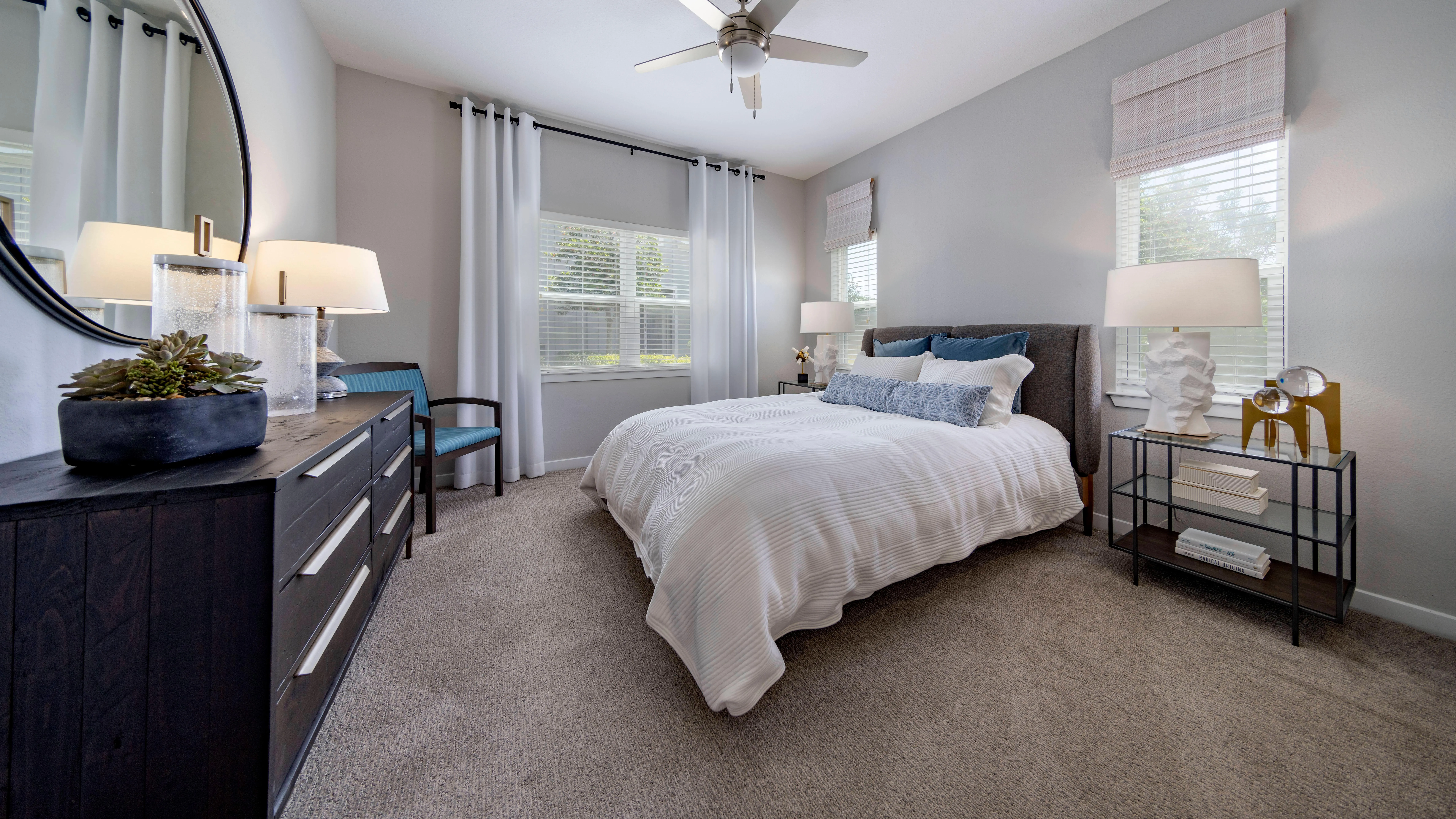 Community amenities include a resort-style pool, a multi-level fitness center, outdoor grilling areas, two fenced-in pet parks, and a pet spa. Additional conveniences include gated entry, a car wash station, available detached garages, and access to high-speed fiber internet.