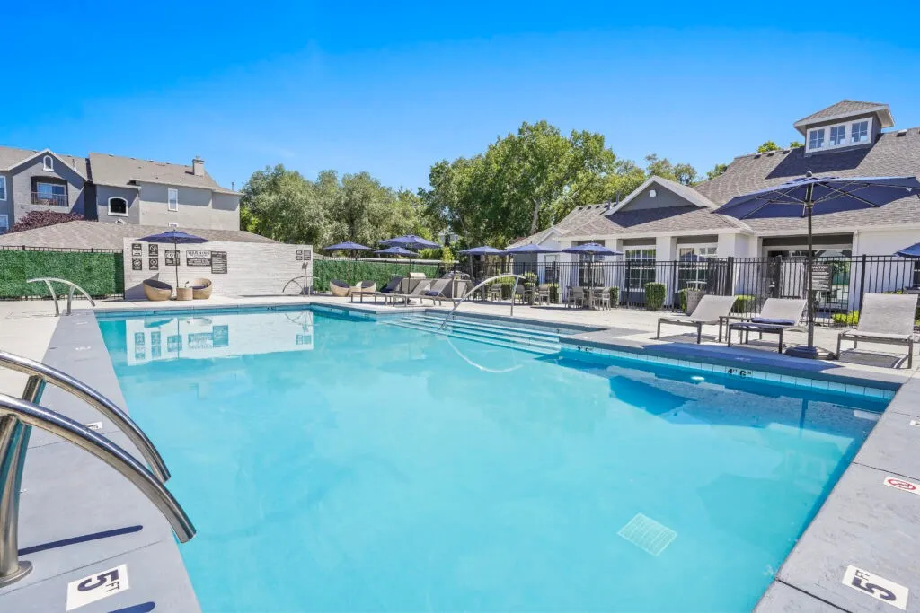 Community amenities include a resort-style swimming pool with lounge seating, year-round open-air spa, state-of-the-art fitness center, and a spin/yoga room. Residents also have access to two dog parks, a playground, basketball court, pickleball court, BBQ grills, and beautiful landscaping.
